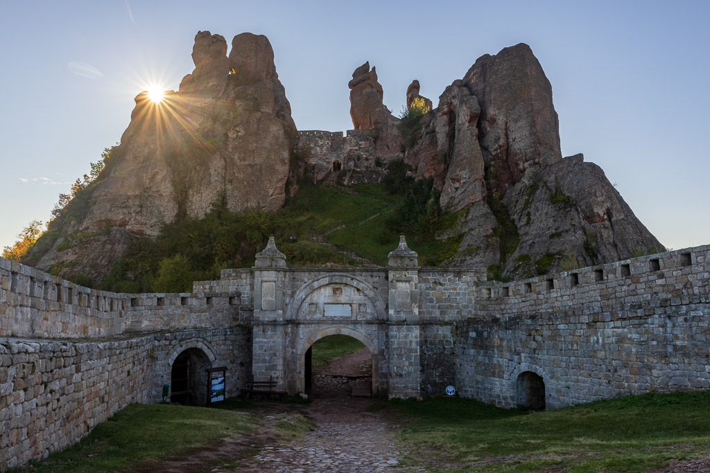 The landscape in Bulgaria after the border at first is pretty flat and uninteresting. Just over an hour after the border, we start approaching the Balkan mountains.  We glimpsed our first sight of Belogradchik as the setting sun lit up the red pinnacles of the Belogradchik rocks. The fortress itself has been built into the rocks using their natural tower-like formations as part of its defensive structure.