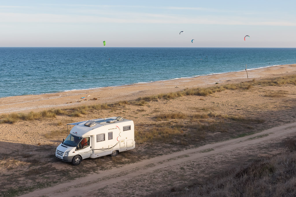 We ended up spending a night on the beach at the unfortunately named Krapets. The is a sandy track along the side of the beach and we drove a couple of kilometres up and parked up on a quiet spot right by the water. As the afternoon sea breeze kicked in the local kitesurfers with mixed skills. There was even a crazy person on a paramotor flying up and down the beach.