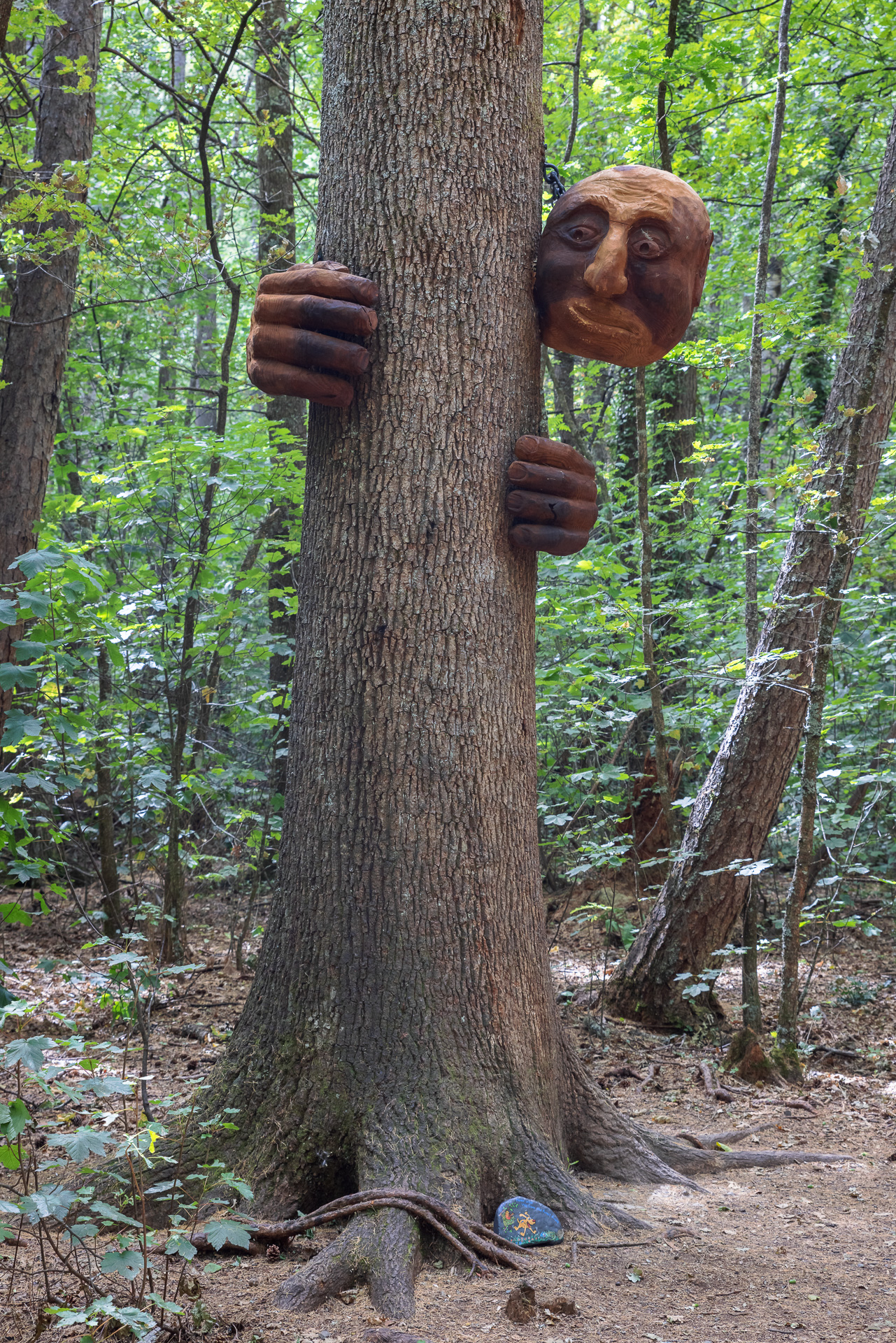 The next morning we hike up to Dog Stream Falls, reached after a hot 45mins uphill through the bush. I don’t hesitate to strip down to my bikini and enjoy an icy blast under the 41m falls, powerful enough to give me a proper ice cream headache. Back down by the village near the car park, there is great little (20min) loop track that goes through the forest and is dotted with sculptures carved from a giant redwood that was grown here.