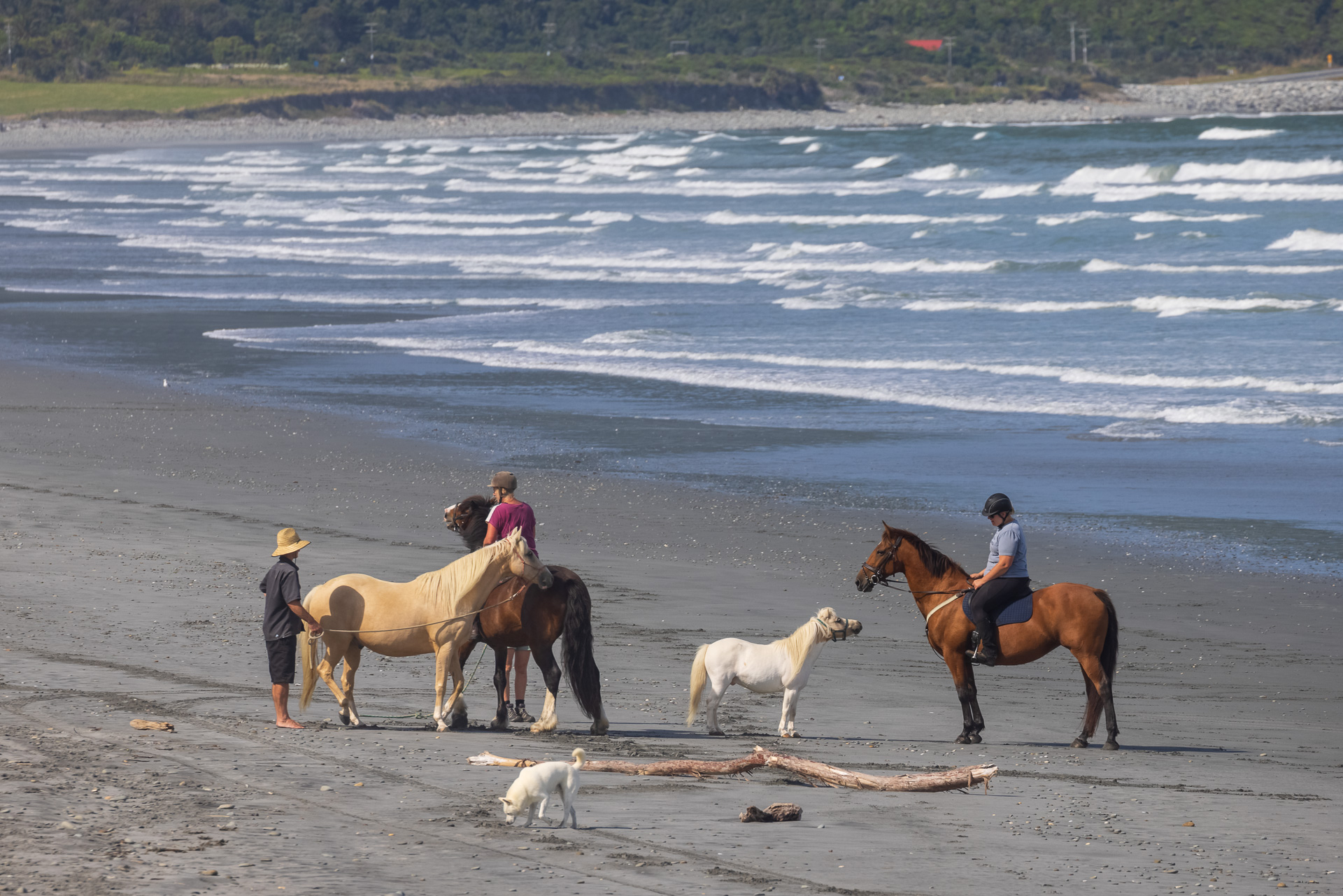 We wake to the sound of a gentle sea rather than the ferocious West Coast treacherous surf that I had been warned about. It was calm enough that I am a tempted in for a morning dip in the shallows (still wary of rip tides). The beach turns out to be a hub of activity with every man woman and their horse, pony and dog out for a walk.